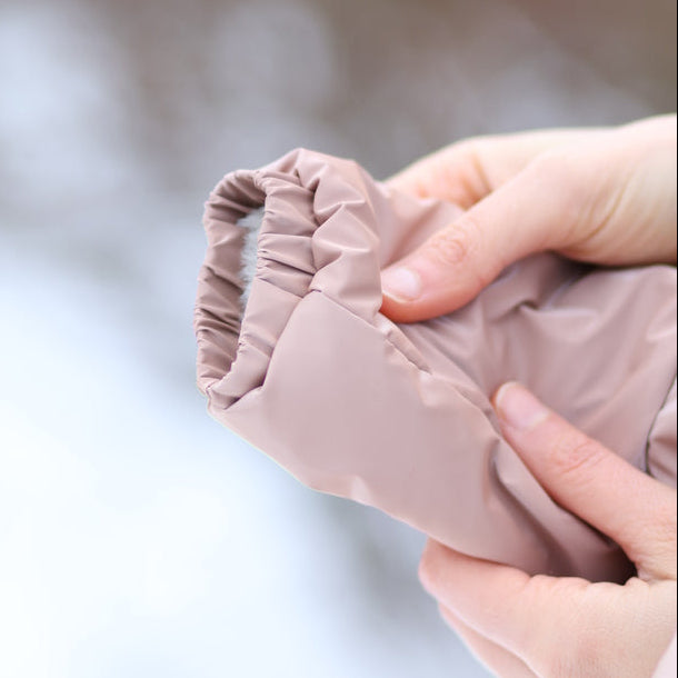 Ściągacze są wodoodporne, dzięki czemu śnieg nie przyczepia się do materiału i nie dostaje się do środka. Kombinezon ma długi kołnierz, który można naciągnąć, aby zakryć uszka, lub wywinąć. W kołnierzu znajduje się otwór do podpięcia smyczy.